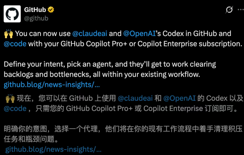 2026年2月4日深夜,全球最大的开发者平台GitHub官宣,正式在其 “智能体总部” 中接入 Claude 和 Codex两大顶级AI编程智能体。