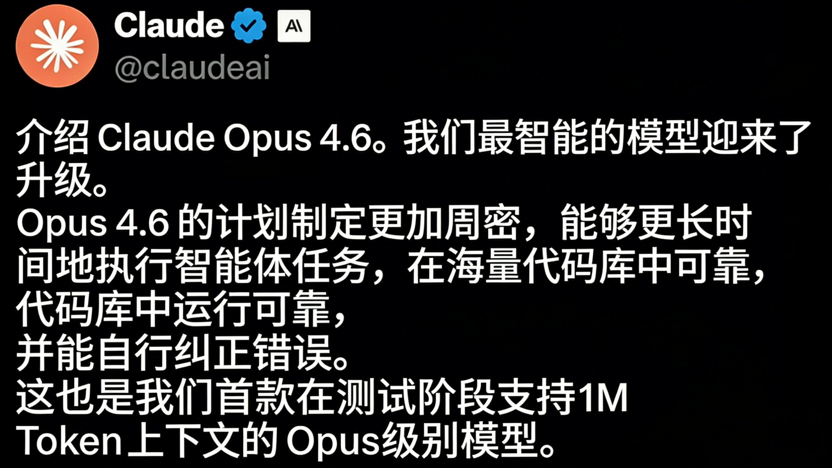 参考资料:https://www.anthropic.com/news/claude-opus-4-6;https://x.com/claudeai/status/2019467372609040752