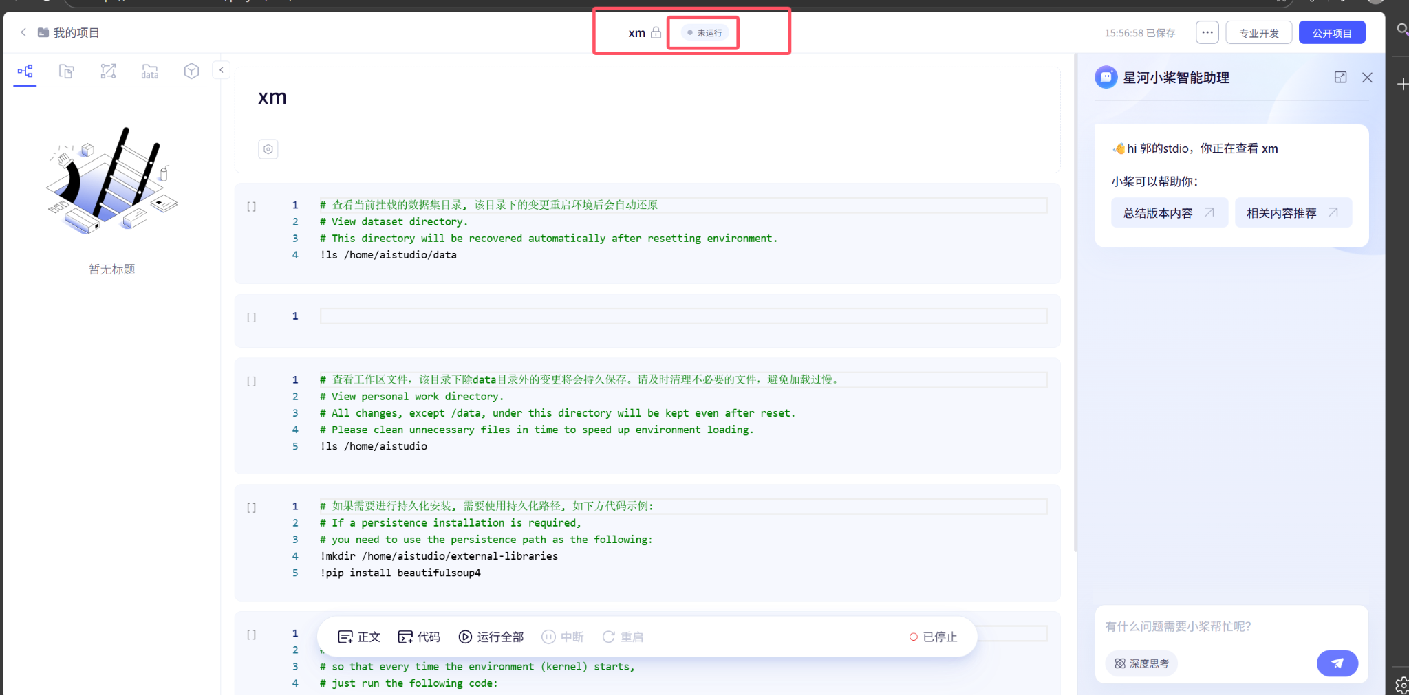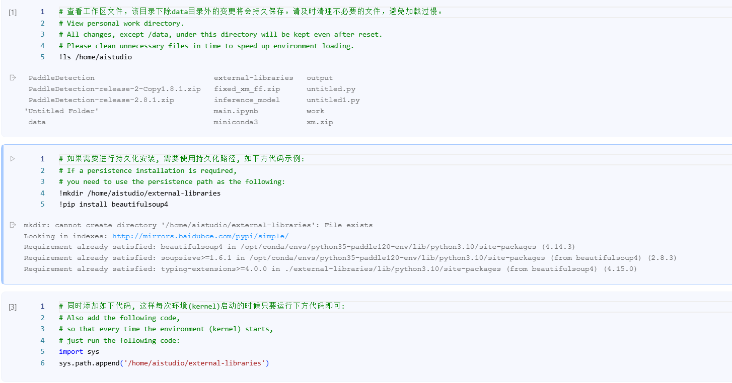 这里有个东西叫持久化,因为你每次退出环境,只有work目录的东西会保留,所以需要持久化让其他的也保留,这个是官方已经写好了的,直接按照顺序运行就好