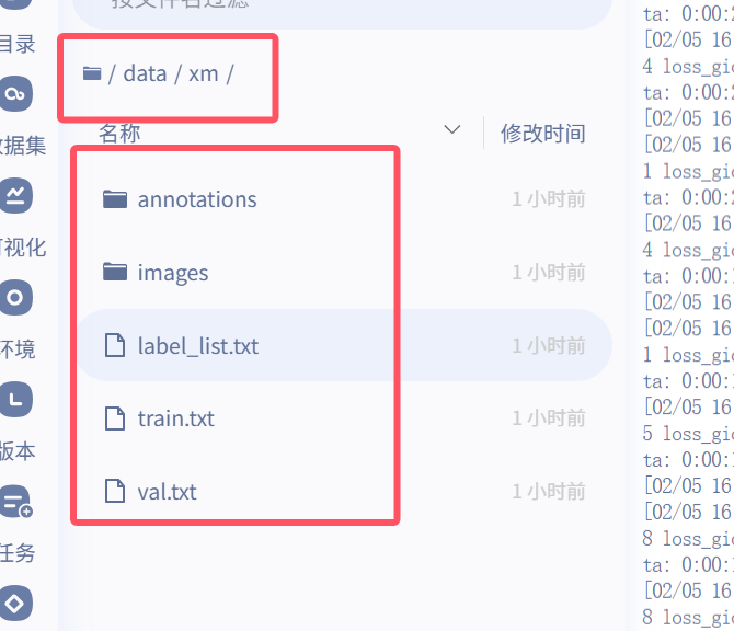 若 /data 目录为只读,可将数据复制到可写目录(如 /work),再分割为 train.txt 和 val.txt。(我看官网上面说主目录下的data目录是可更改的,我也不知道为什么我这个是只读模式,然后就复制里面的全部数据,转出来,然后再分train.txt和val.txt)