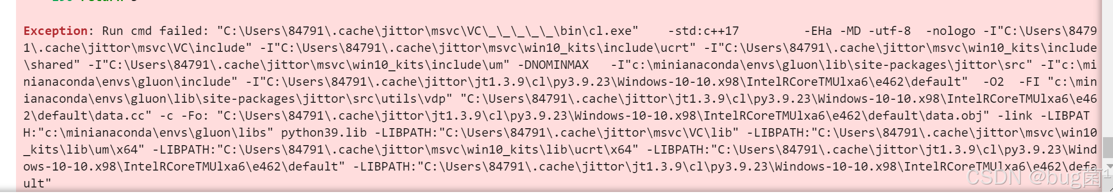 jupyter notebook报错:Exception: Run cmd failed: “C: \Users\84791\.cache\jittor\msvc\VC...如何解决?
