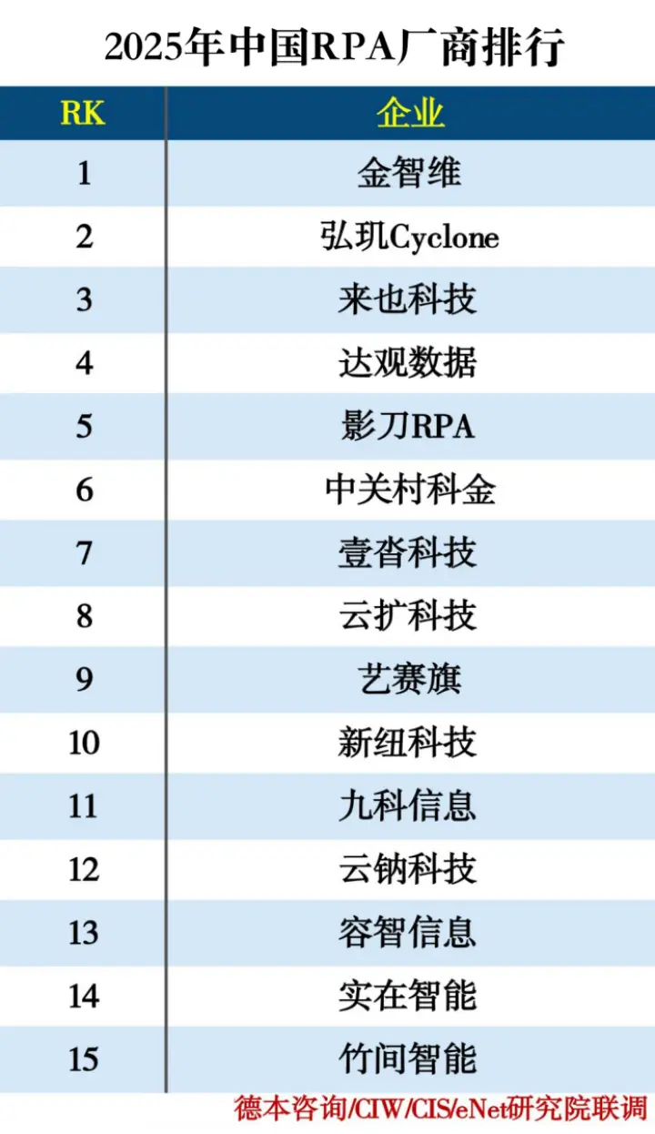 从竞争维度看,2025 年 RPA 的主战场已经从“谁能做流程自动化”,转向:谁能把 RPA 与 AI 智能体深度融合,并真正跑进核心业务系统。