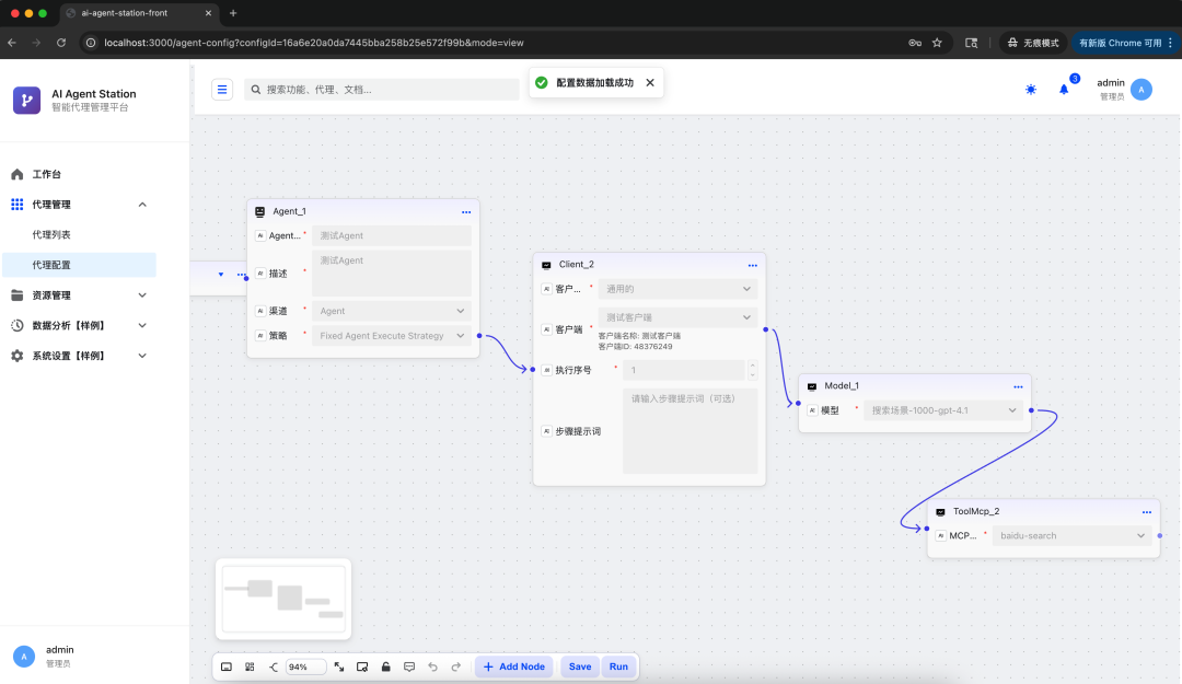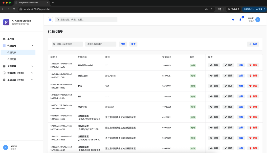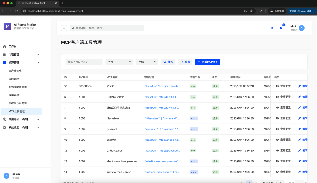 - 管理后台目前提供了,代理管理(拖拉拽编排方式配置智能体),资源管理(model、client、mcp、advisor、prompt)