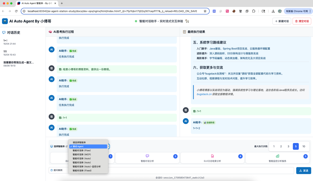 这篇文章介绍了小傅哥耗时7个月开发的基于Spring AI框架的AI Agent智能体项目,包含38节课程(视频+文档),涵盖前后端+DevOps技术栈。项目从RAG到MCP,实现了企业级可编排的AI Agent智能体,提供可视化链路编排、多种执行设计模式、RAG和MCP开发能力等技术点。适合希望提升AI应用能力、增强核心竞争力的开发者,项目已部署上线并提供完整源码。❝沉淀、分享、成长,让自己和他