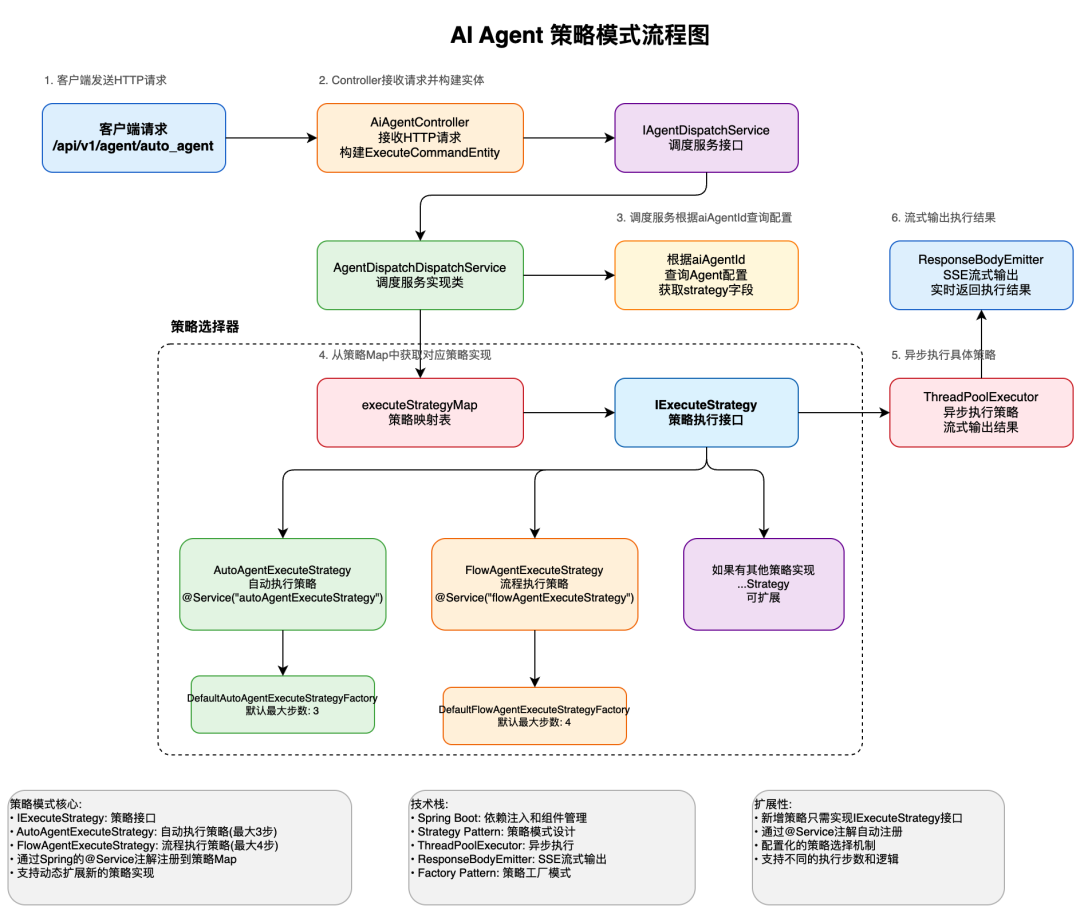 - 这里会根据用户的请求,进行策略路由,找到所需的 Ai Agent 执行策略进行处理。这里小傅哥也有意加入不同的策略,让大家可以看到很多的 Ai Agent 设计思路。