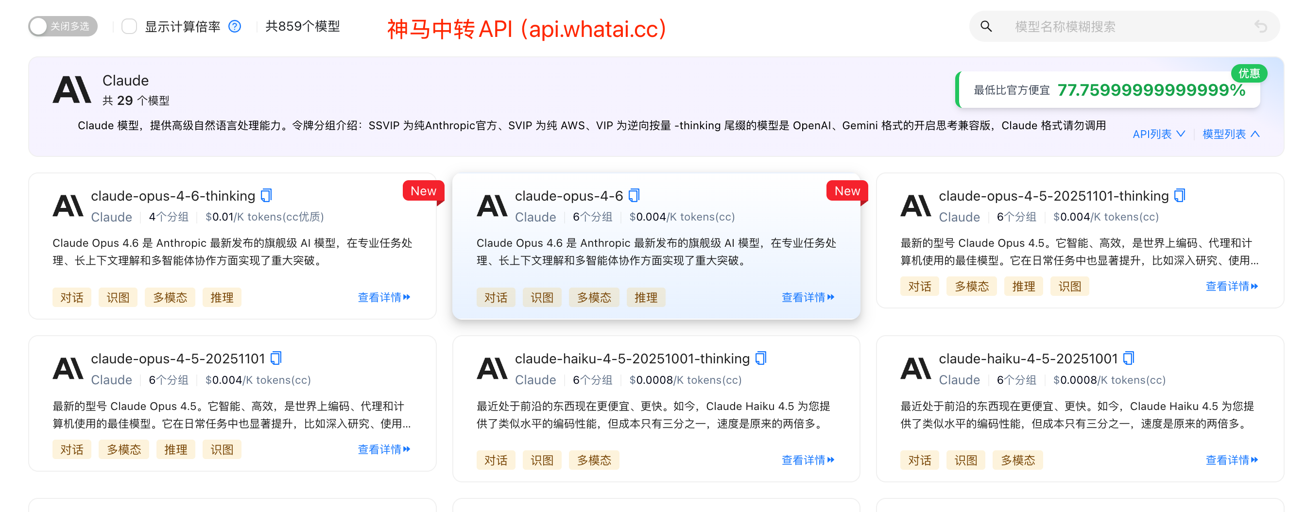 神马中转API价格