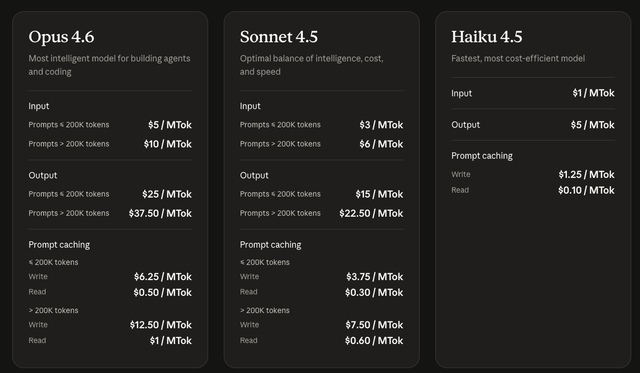 - 100 万 token 上下文(测试版)。Opus 4.6 是我们首款支持 100 万 token 上下文的 Opus 级模型。对于超过 20 万 token 的提示部分,将采用溢价定价:每百万输入/输出 tokens 分别为 10 美元/37.50 美元。