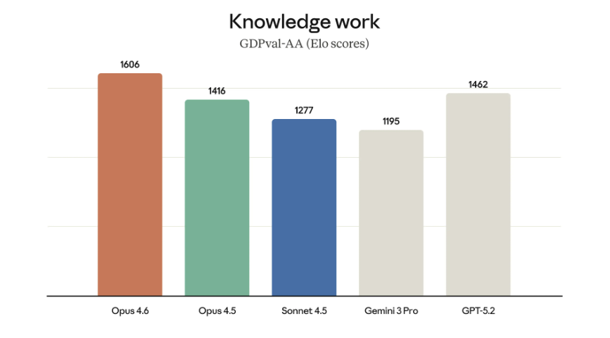 Opus 4.6 在多个专业领域的实际工作任务中都达到了最先进的水平。