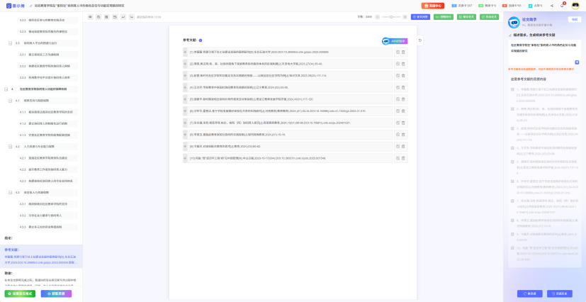 【实测表现】:依托字节跳动文献数据库,可检索 CNKI、万方等平台文献,内容专业度中等,逻辑连贯性略低于雷小兔,主打“人机协同”,但初稿有明显 AI 痕迹,需优化细节。