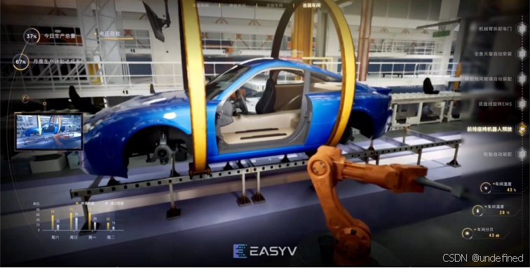 通过EasyModel数字空间底座生产平台,短时间内快速构建了覆盖车间生产线中冲压、焊装、涂装、总装等汽车生产的工艺流程,支持通过孪生车间直观监测现实工厂的运行情况,实现极高程度的无人化生产,智能化水平达到工业4.0标准。同时依托EasyHuman实时交互式AI数字人融合了大量可以通过移动端远程操控的人机交互能力,通过接入监控、传感器等系统,能够在虚拟环境中进行碰撞安全、能耗、智能驾驶算法等测试。为生产模拟带来更加真实、便捷的用户体验,加速验证产品功能价值,灵活驱动计划调整,提升新品上市进程。