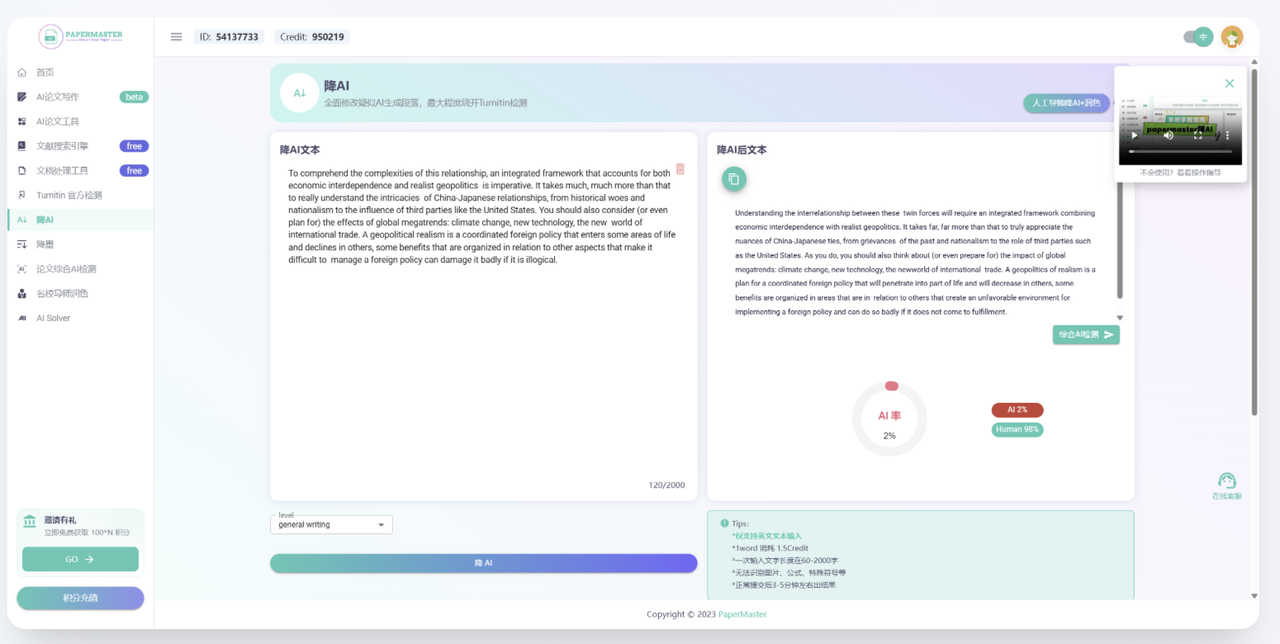PaperMaster算是比较新的降AI平台,特点是检测与修改结合。