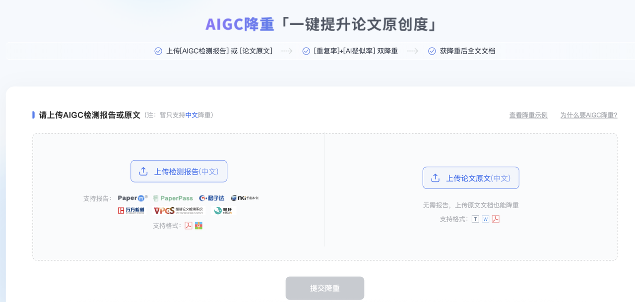 四、Paperyy —— 老牌查重平台的论文降AIGC功能