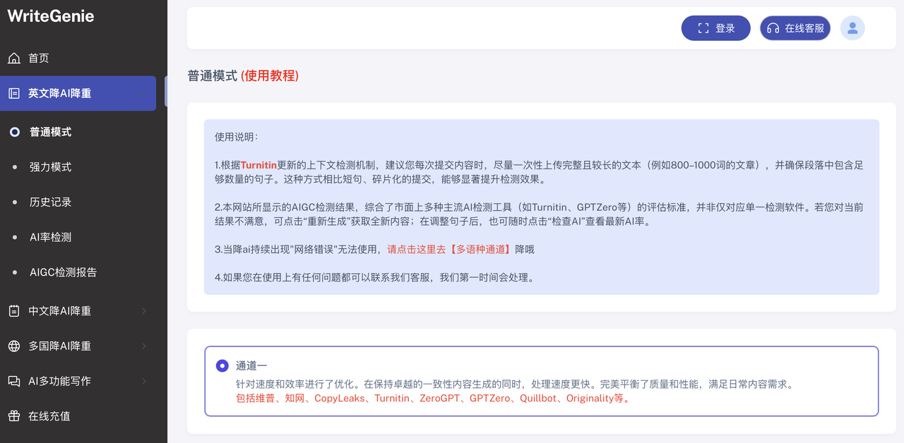 五、WriteGenie —— 英文学术党专用的AI降AI利器