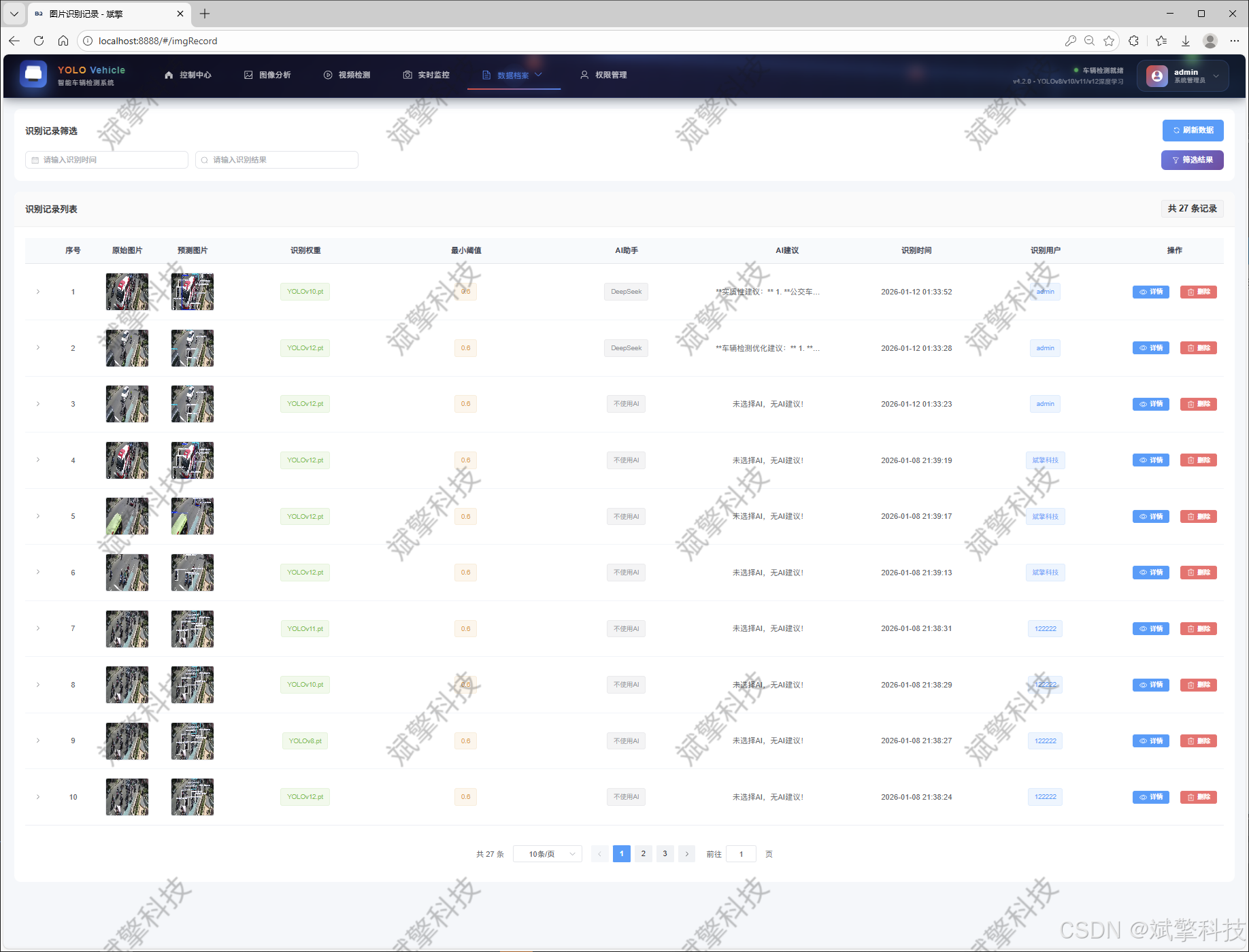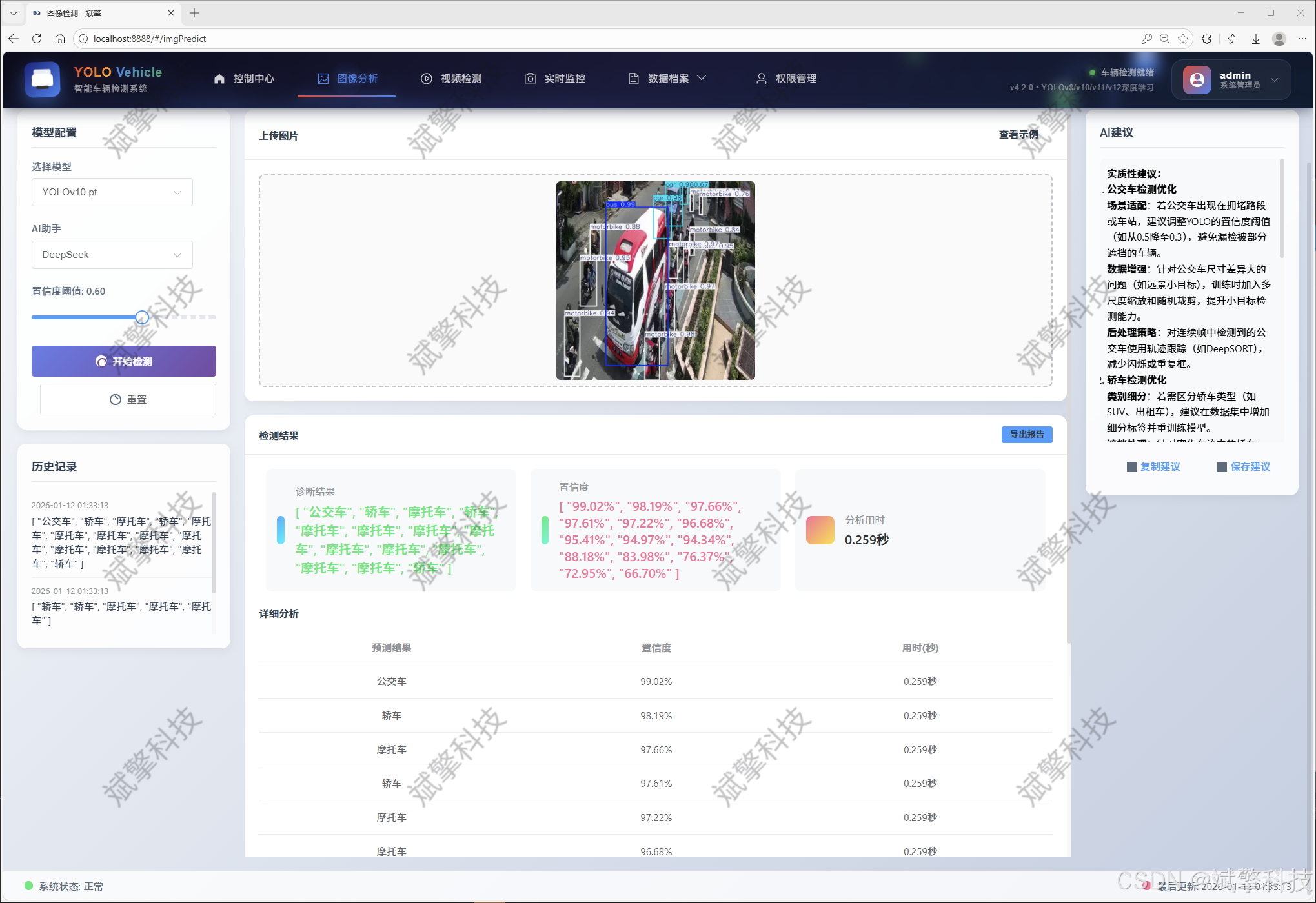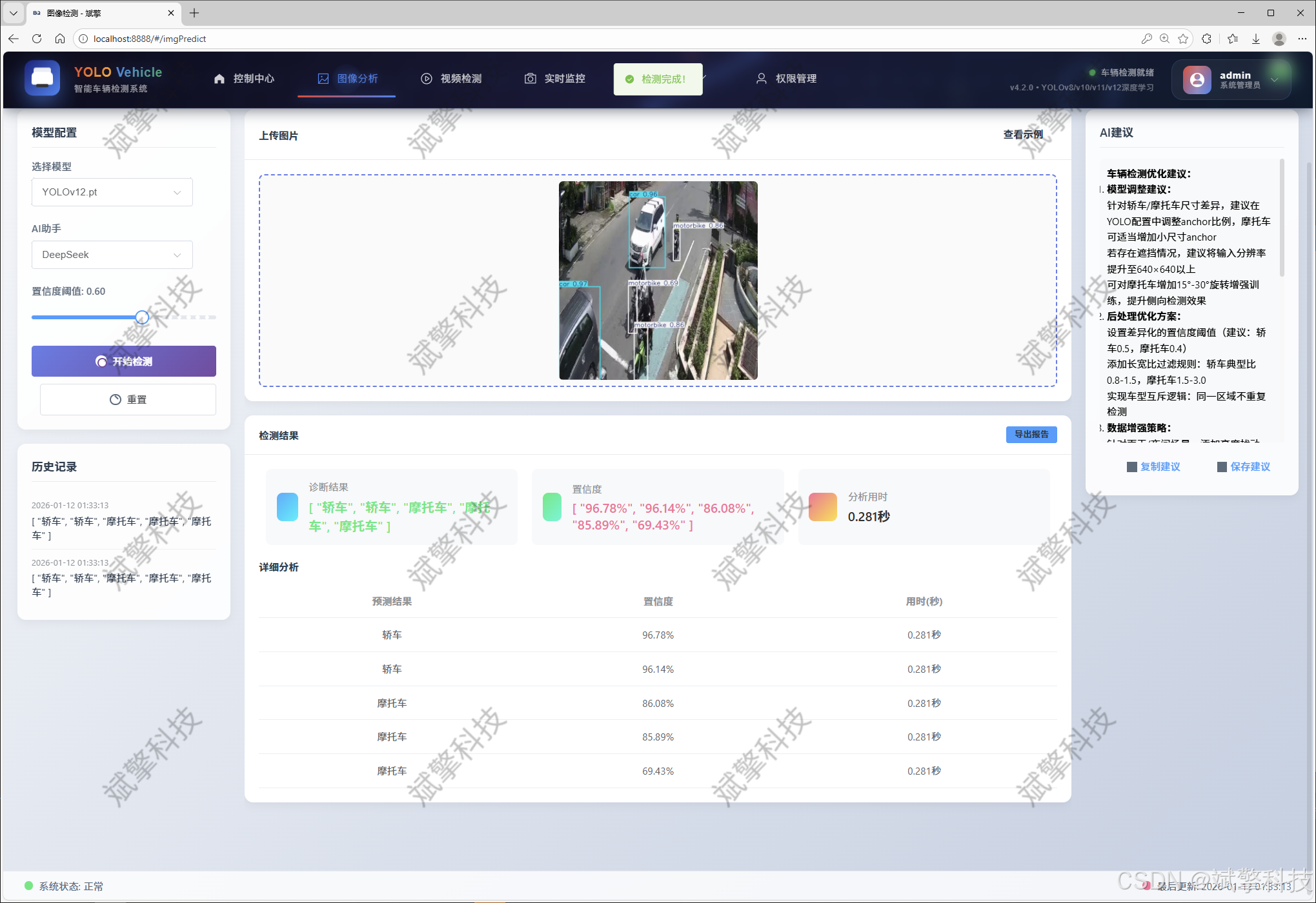 关键词:车辆识别与检测;YOLO系列算法;SpringBoot;前后端分离;DeepSeek大模型;智能交通系统;Web应用;数据可视化