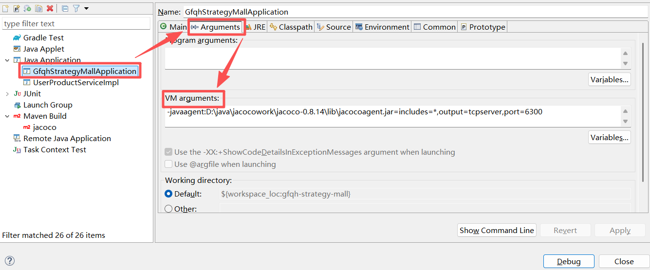3.在eciplse中debug/run配置jacocoagent,用来它在 Java 程序运行时收集代码覆盖率信息