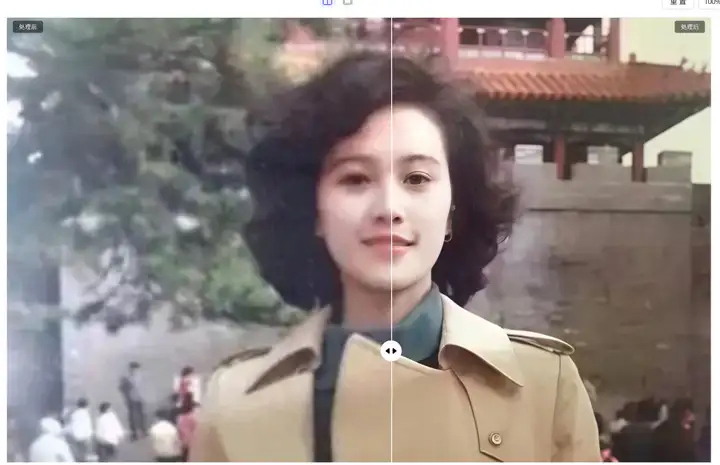 人像照片经过处理后,脸部细节明显清晰,五官轮廓和表情特征得到较好恢复,整体画面看起来更清楚自然。不过,头发细节处理相对一般,部分区域出现白色小点,画面噪点也被一定程度“放大”,整体质感略有差异。