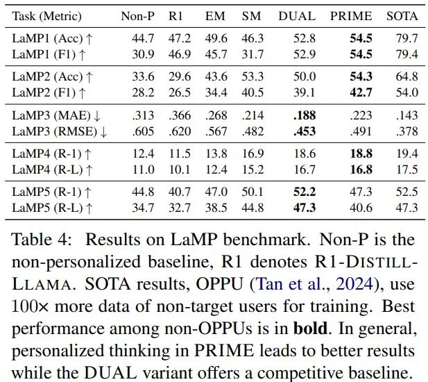 图3. PRIME在LaMP数据集上的实验结果
