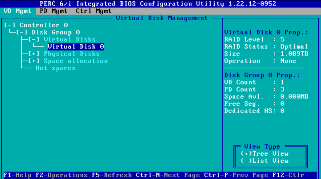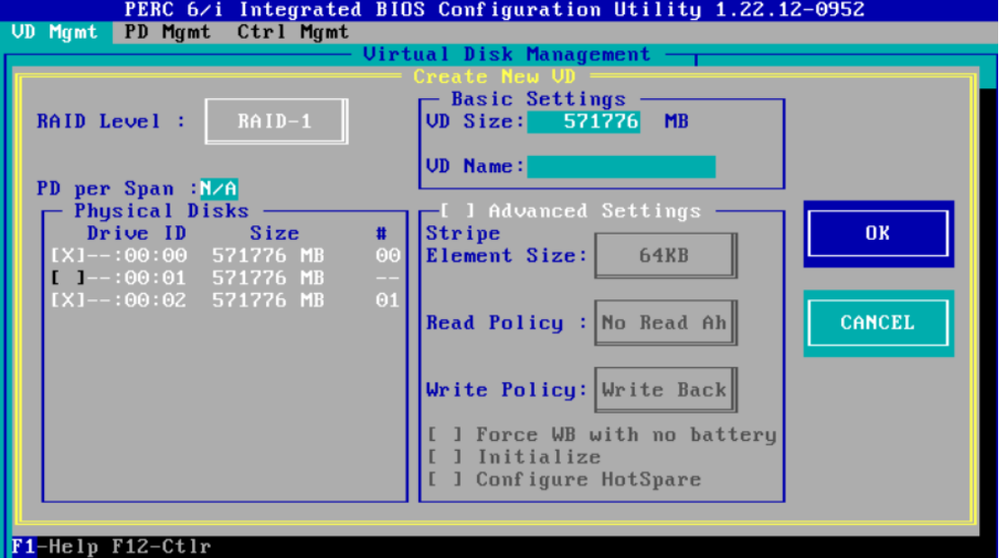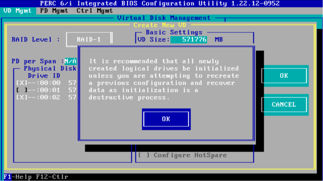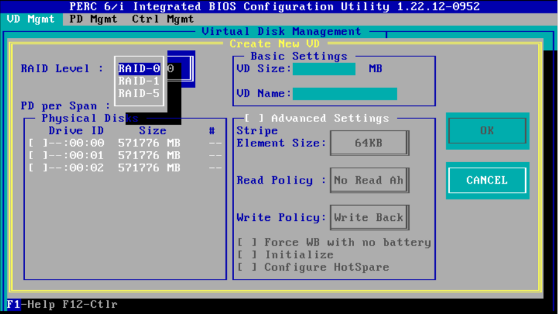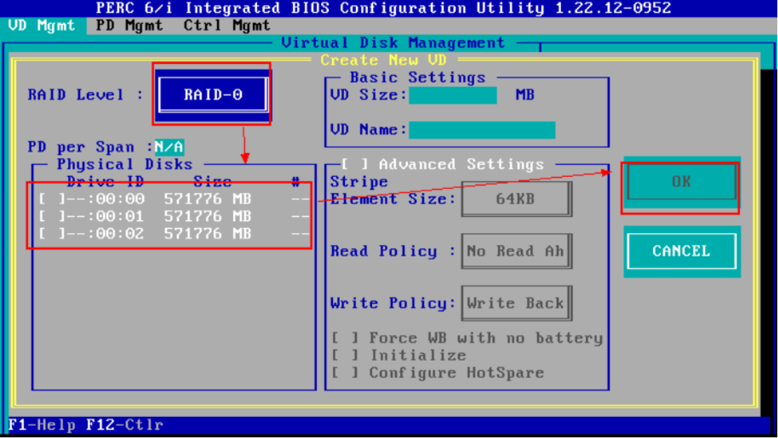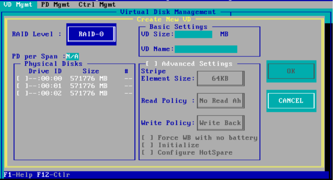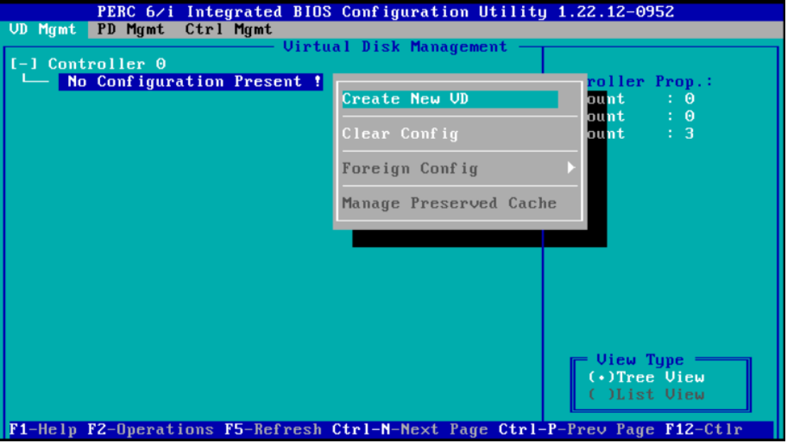 5、然后按 F2 选择第一项(Create New VD)创建新的RAID