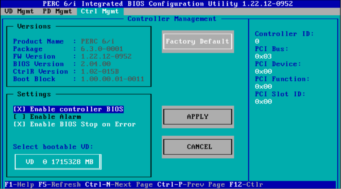 2、当 dell 界面过去后屏幕会有相关组合键提示,同时按下 ctrl + r 进入 raid 配置界面,根据经验建议多按几次,进入到如下的配置界面,在图的右侧可以看到默认为 raid 5,磁盘大小等信息。