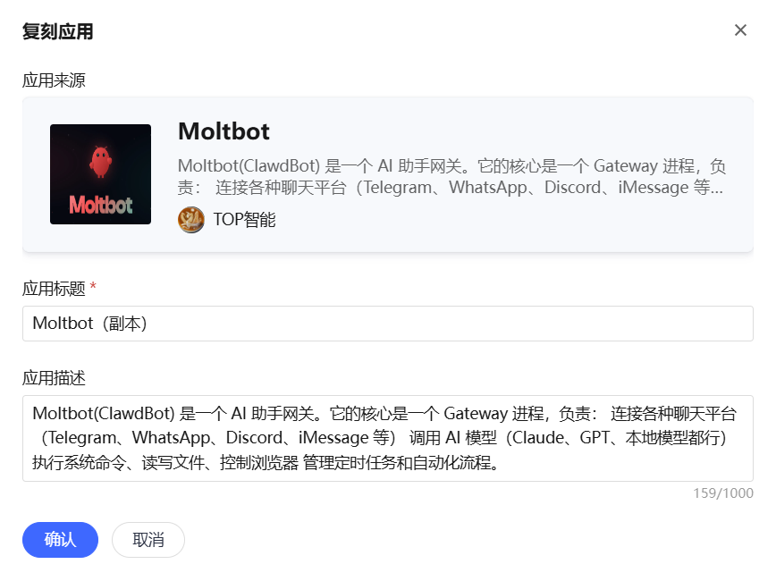 - 应用名称:Moltbot AI 助手(可自定义)