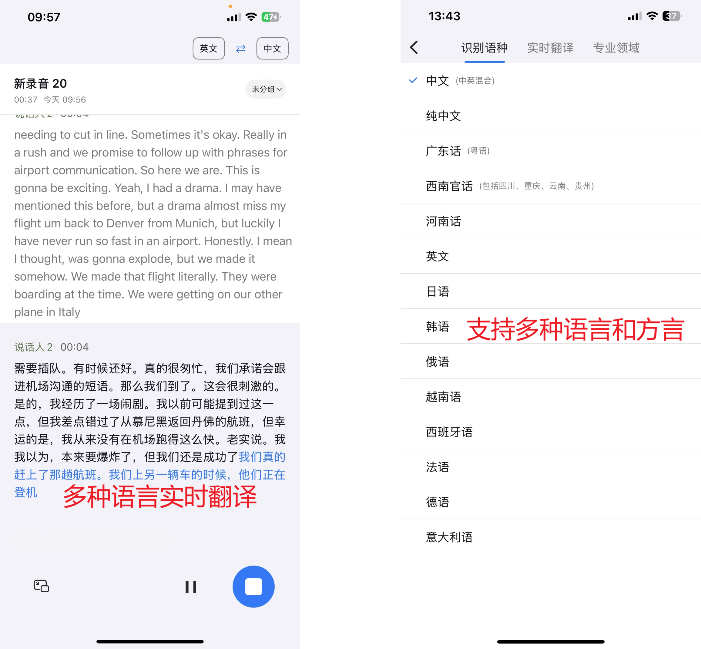 - 英文和专业术语识别准确率会下降,在处理复杂英文或法律、金融等专业领域的"黑话"时,可能出现错别字,需要人工二次校对。