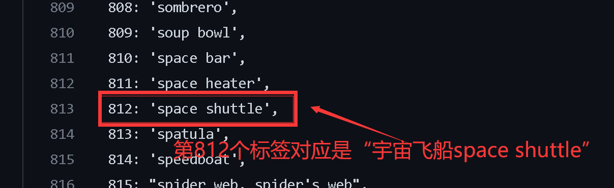 通过结果TOP的训练集标签查询可知,识别结果是宇宙飞船,训练集标签可详见(https://gist.github.com/yrevar/942d3a0ac09ec9e5eb3a)。