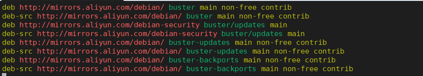 deb http://mirrors.aliyun.com/debian/ buster-backports main non-free contrib