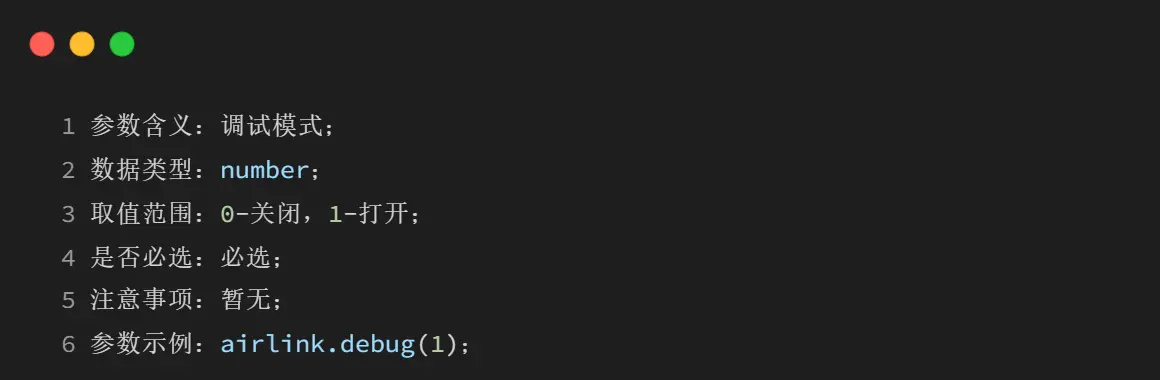 4.8 airlink.debug(mode)