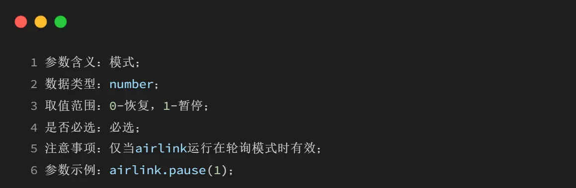 4.9 airlink.pause(mode)