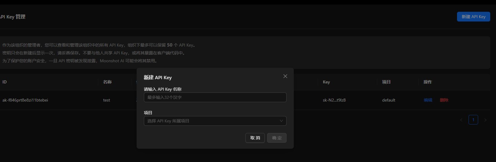 前往 Moonshot AI 开放平台 注册账号并创建 API Key。