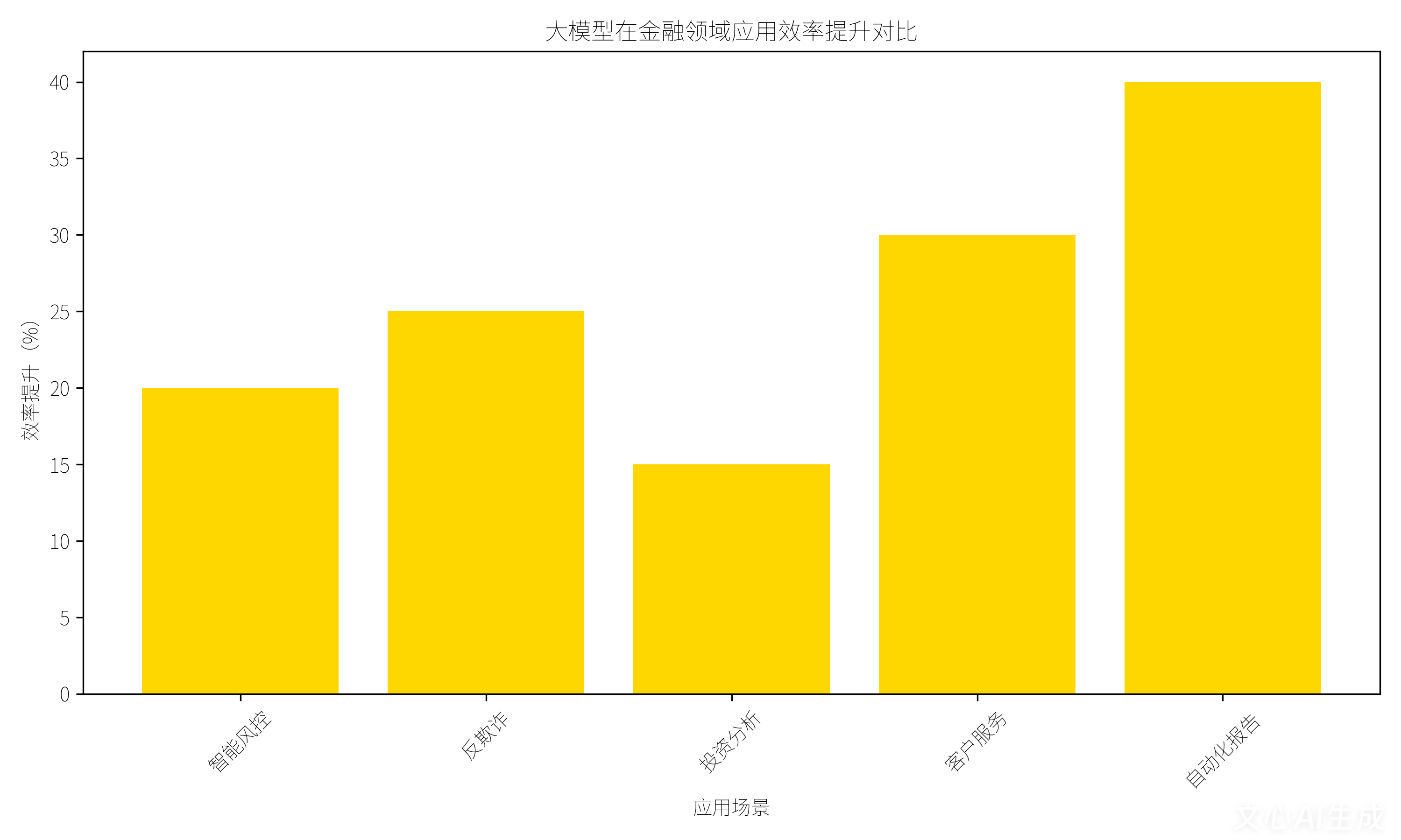 效率提升对比图:自动化报告生成场景中,大模型通过自然语言生成(NLG)技术实现投研报告、风险报告的自动生成,报告生成效率提升40%,同时保证内容全面性与深度。