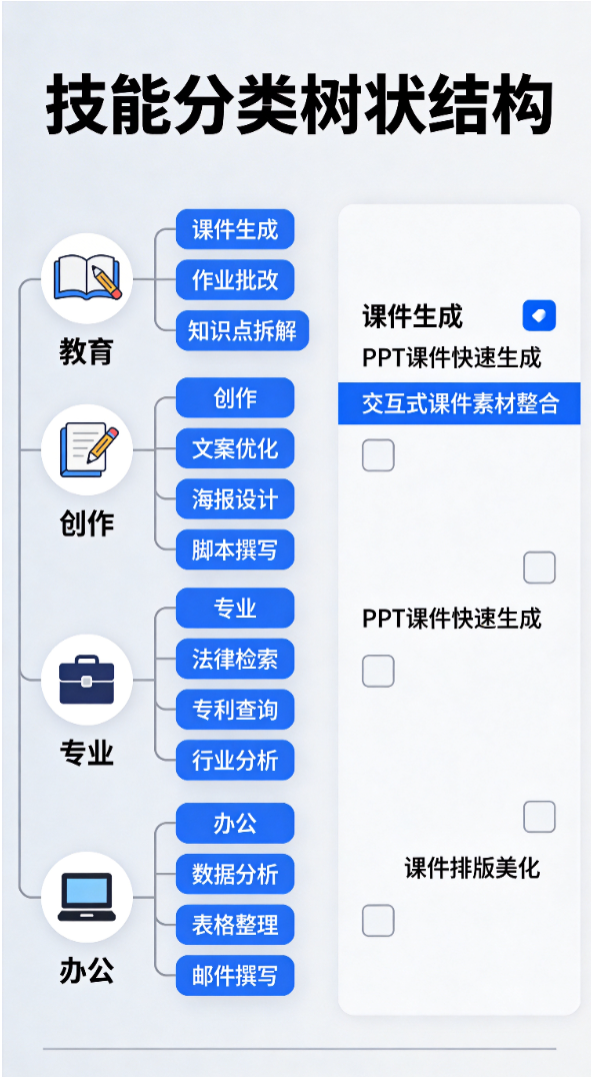 - 推荐技能:“历史课件生成”“互动教学设计”“知识点可视化”
