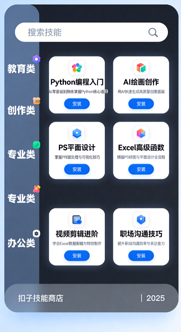 - 高效找技能:通过分类和搜索快速定位所需能力