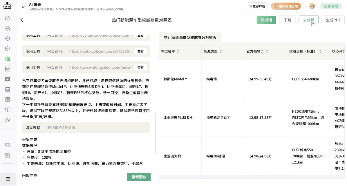 你可以把它理解为:把碎片信息变成表格,把表格变成分析,把分析变成PPT。