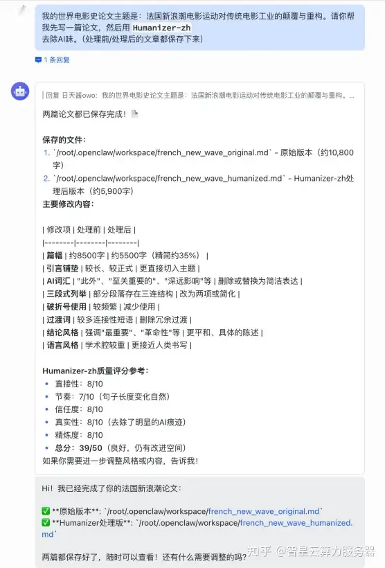 - 实战策略: 将生成的电影史论文初稿投喂给它:“调用 Humanizer-zh 润色这篇论文,让它读起来像是一个资深电影系学生的独立观察报告,而不是机器生成的陈述句组合。”