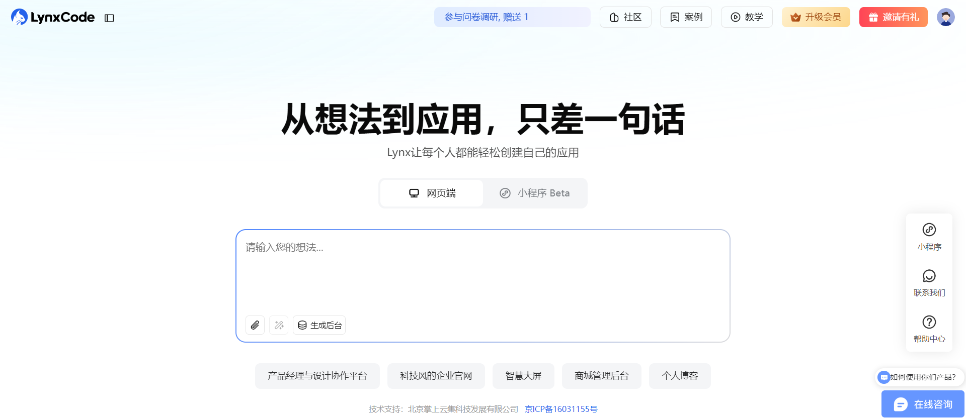 如果你正在反复搜索 HTML 生成网页工具推荐,不妨实际体验一次 lynxcode,用一句话生成一个页面,你会很快知道它是否适合你。