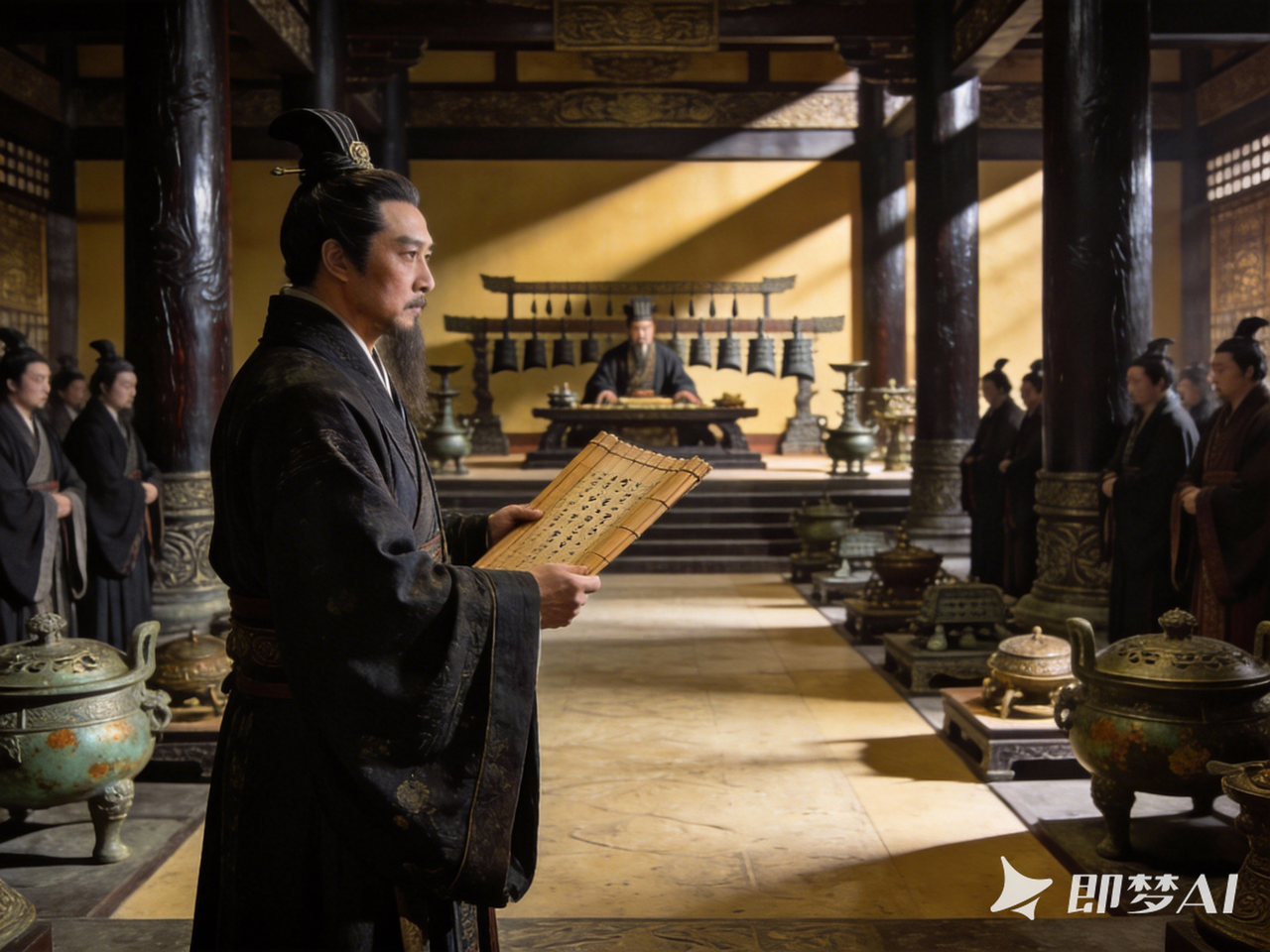 镜头1:朝堂压迫感 + 竹简陈策 → 你顺势问一句:“他为什么坚持?”