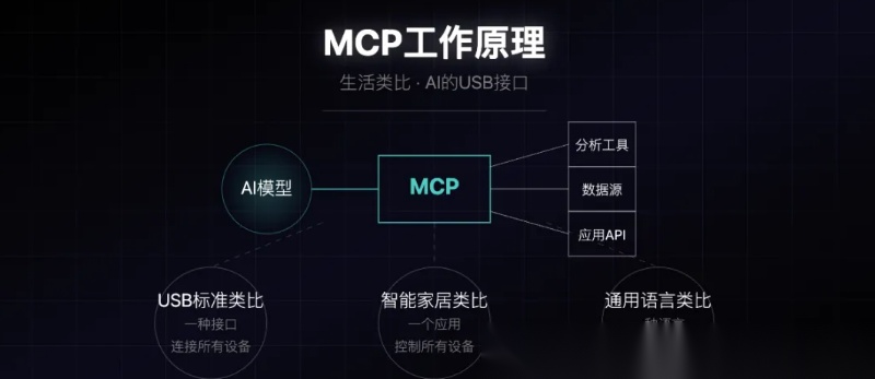 万能连接器(MCP):它能够使用各种外部工具和系统。需要发邮件?预订机票?计算复杂数学问题?它都能连接到适当的工具来完成。
