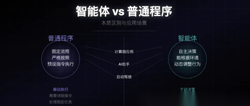 Agent 像一个私人助理: 假设你告诉助理:“帮我安排下周去北京的商务旅行。”一个好助理会自己决定需要预订机票、酒店、安排会议时间等,并自己完成这些任务。Agent 就是 AI 的这种“理解目标并自主行动”的能力。