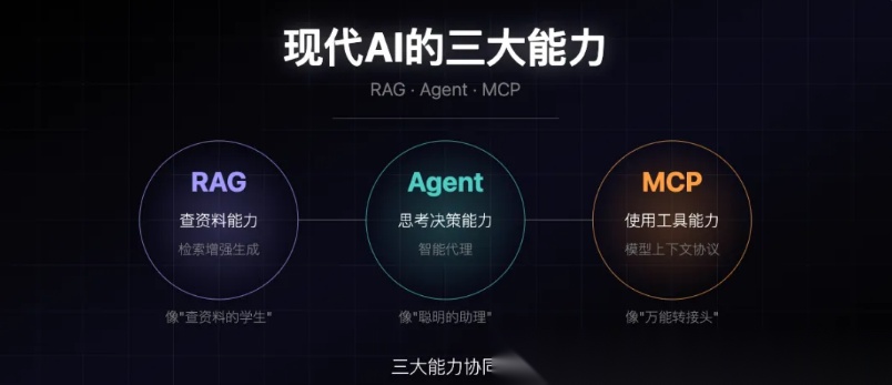 当这三种能力结合在一起,你就拥有了一个既知识丰富,又能独立思考,还能使用各种工具的全能助手。这就是现代 AI 系统通过结合 RAG、Agent 和 MCP 所追求的目标。