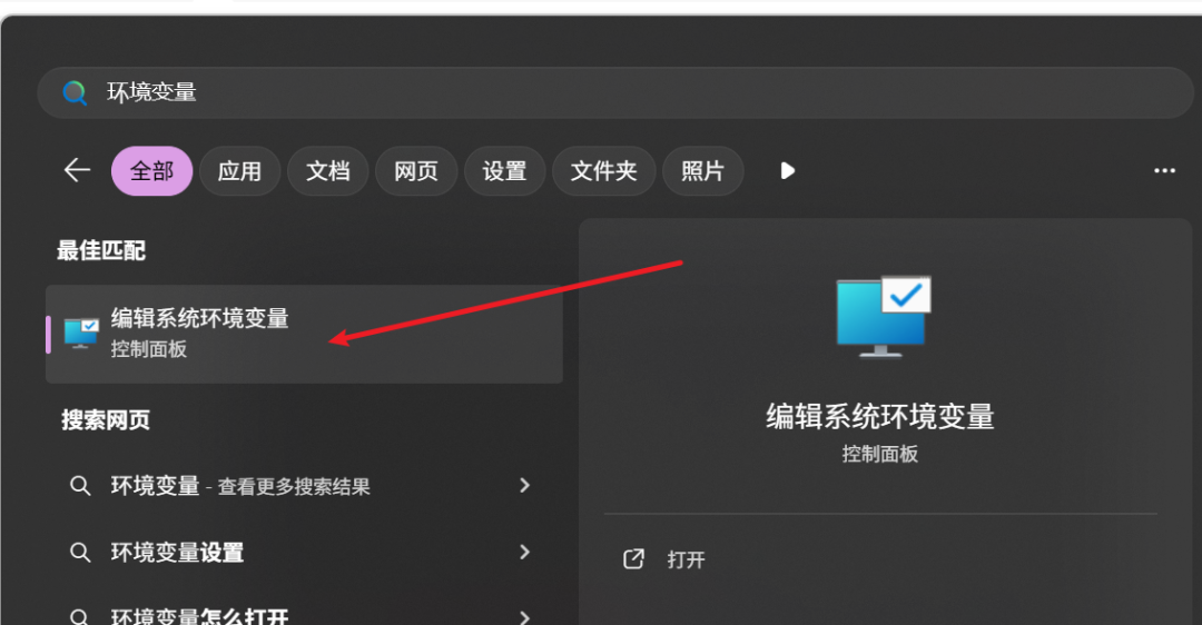 以 Windows 为例,设置环境变量。直接搜索环境变量,