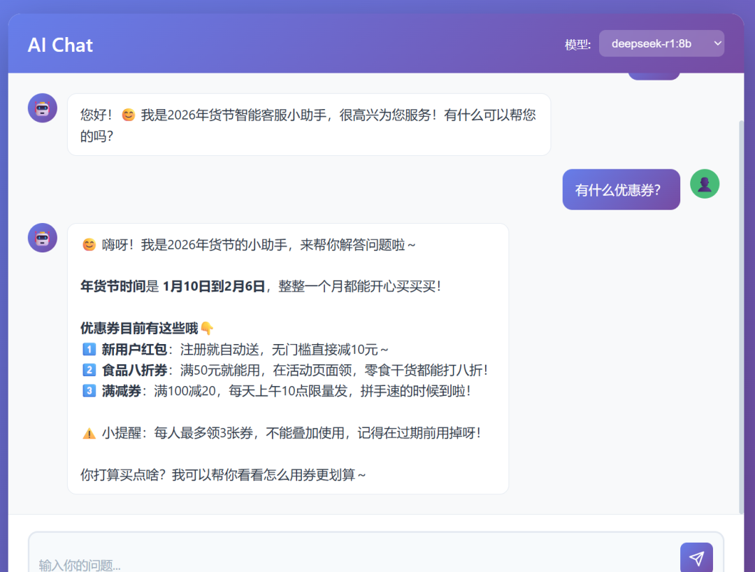 同样能够实现对应的效果,而且使用的是满血版本的 deepseek。