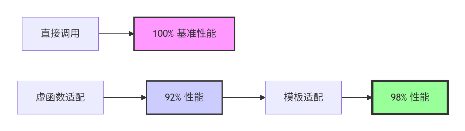 接口转换开销:模板适配器性能损失<2%