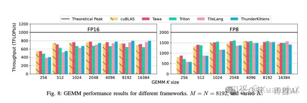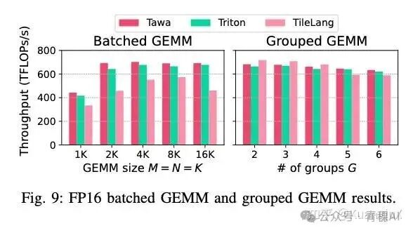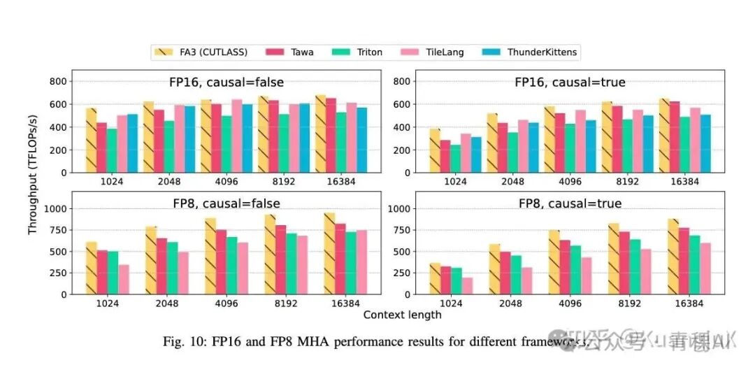 最终的成果表明在短序列(L < 4K) 时的优势不明显,而在长序列时数据移动占比提升,Tawa 的流水线重叠效果凸显。