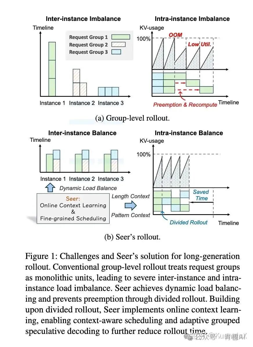 Seer 这篇 paper 主要是聚焦同步 RL System 的 Rollout 阶段的优化。