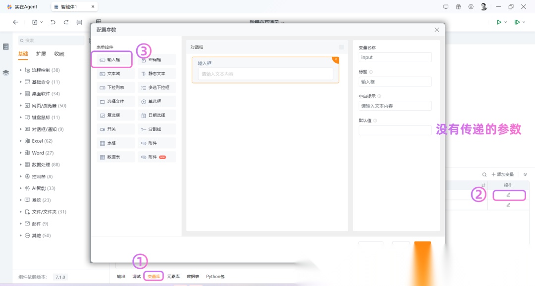 2️⃣ 保存后回到工作流,RPA 流程详情里出现了「输入变量」!把大模型的输出写入 RPA 输入框 —— 数据无缝衔接,流程跑起来!