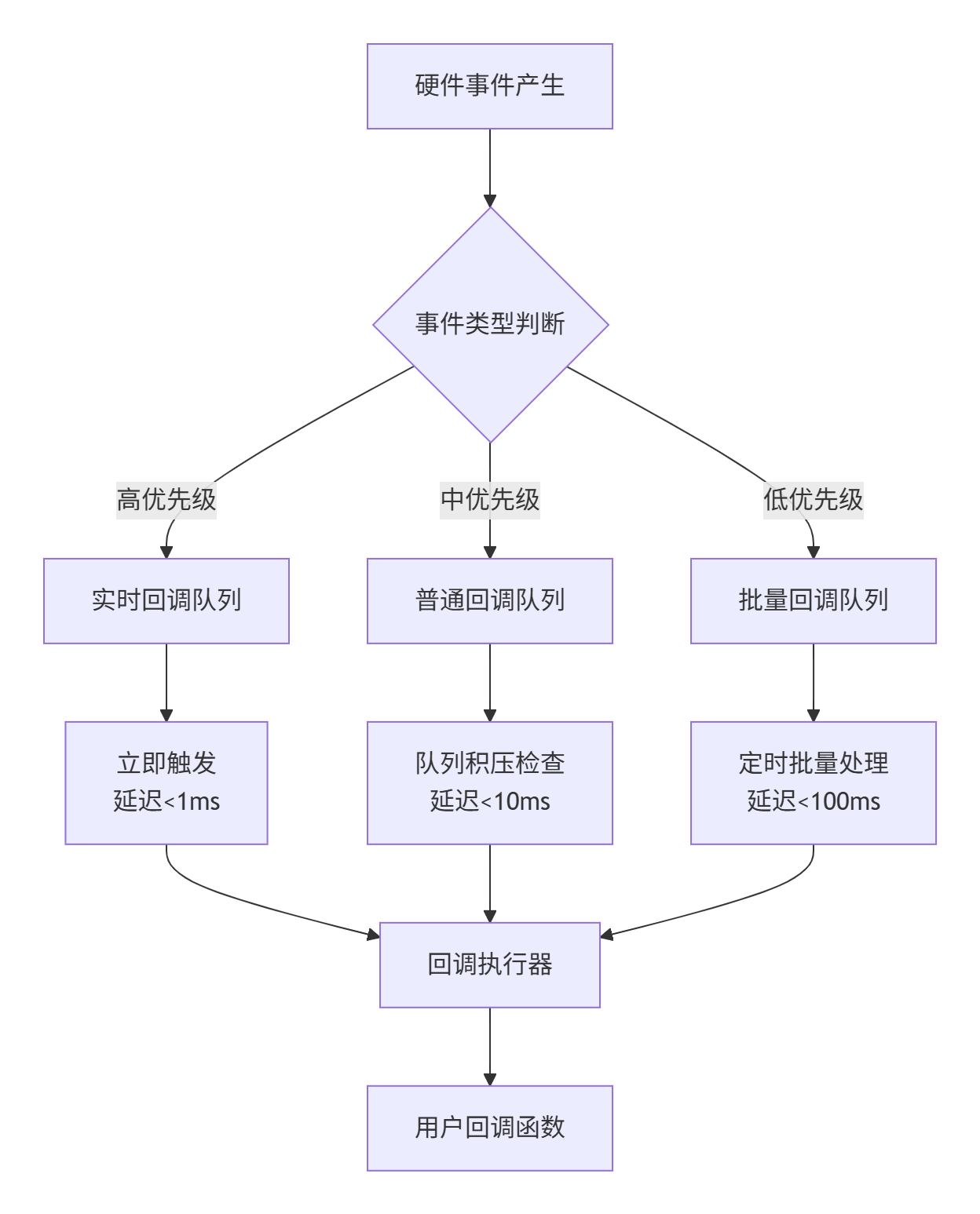 从曲线图可以看出,在事件频率低于5000/秒时,延迟基本稳定在10μs以内。只有当频率超过20000/秒时,才开始出现明显的队列积压,但通过动态优先级调整,系统仍能保持关键事件的低延迟处理。