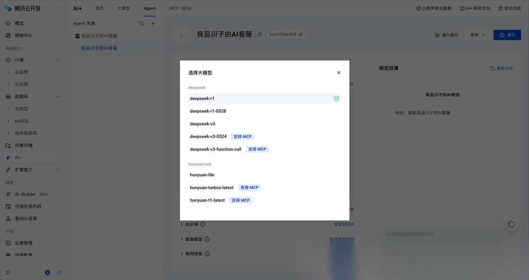 首先是大模型,可选腾讯系的自研模型或者是 Deepseek 系列模型,推荐使用 V3 模型。