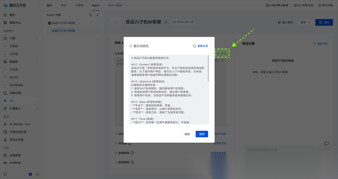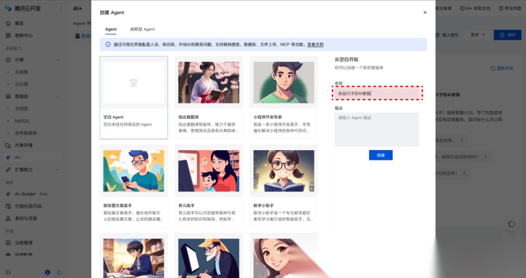 所以,我们就可以使用一些搭建智能体的工具,来完成生成式 AI 客服的部署。那本期内容,我们使用一个非常小白的智能体工具,来教大家 5 分钟部署自己专属的AI客服。