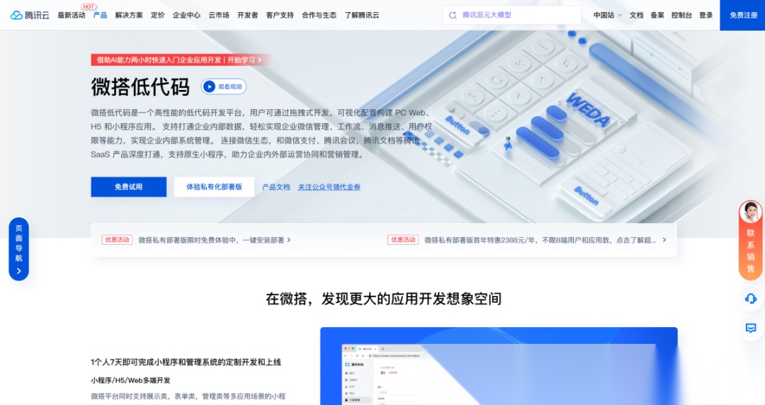 腾讯系的微搭低代码:https://cloud.tencent.com/product/weda